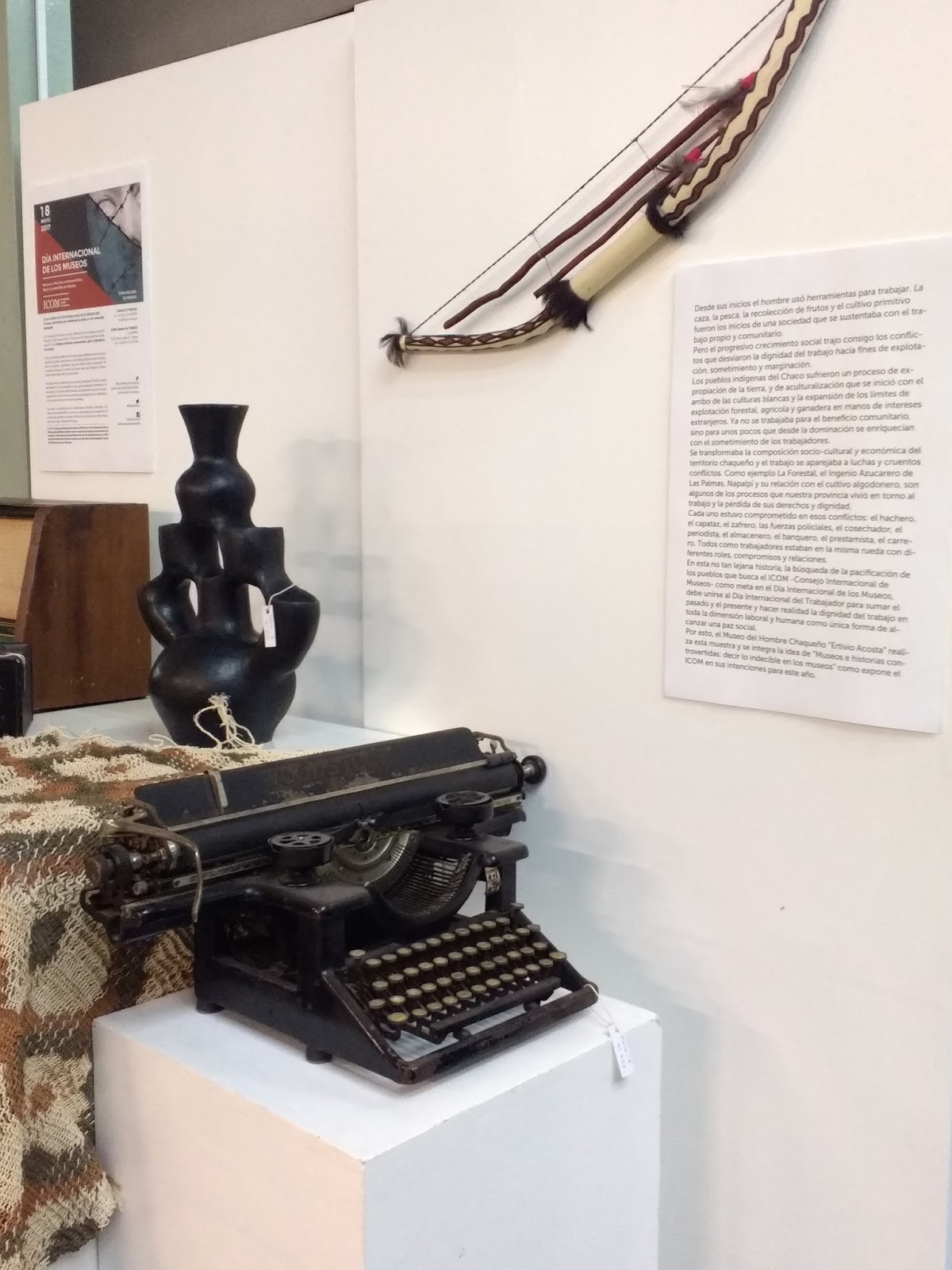 El Museo del Hombre Chaqueño "Ertivio Acosta" habilitó la muestra transitoria "El trabajo en el Chaco. De la explotación a la búsqueda de la paz" y permanecerá habilitada durante todo este mes en el marco del Día Internacional del Trabajador y el Día Internacional de los Museos a conmemorarse el próximo 18 de mayo.